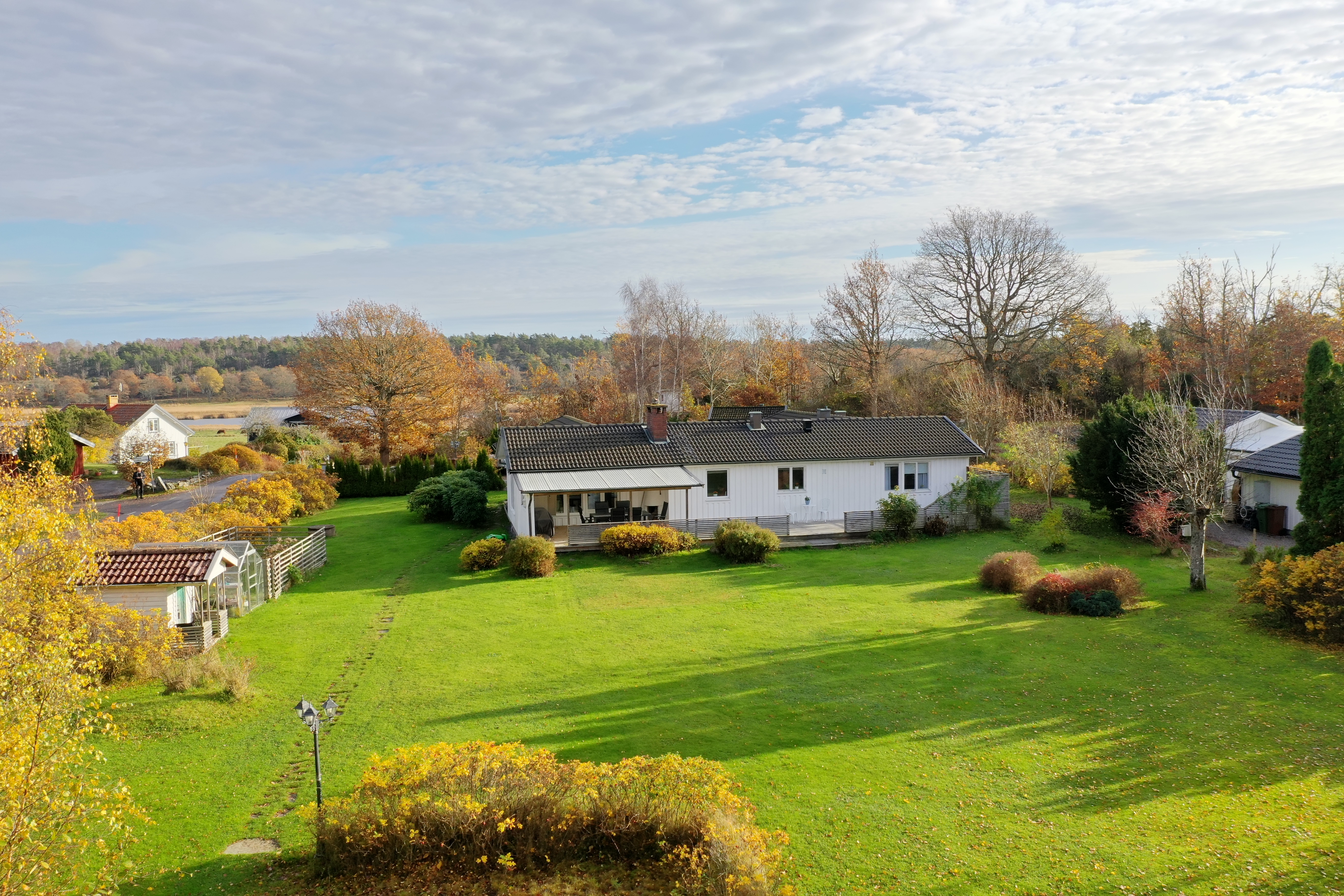 På fastigheten finns en friggebod, en lekstuga och ett växthus.