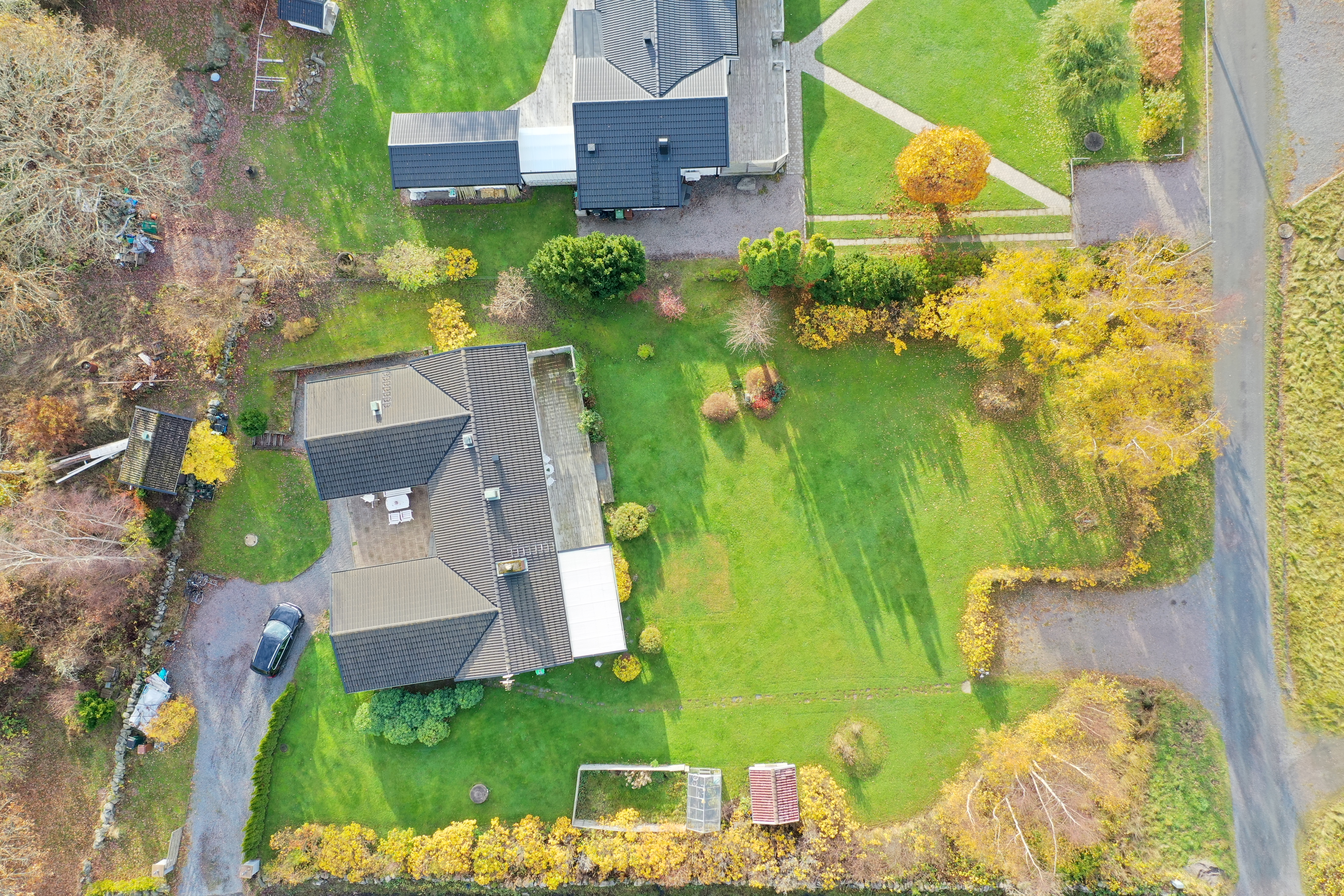 Den generösa tomten på hela 1994 kvm erbjuder gott om plats för parkering, lek och spel. En stor gräsmatta inbjuder till utomhusaktiviteter och trädgårdsälskare kan fortsätta utveckla sina odlingsdrömmar.