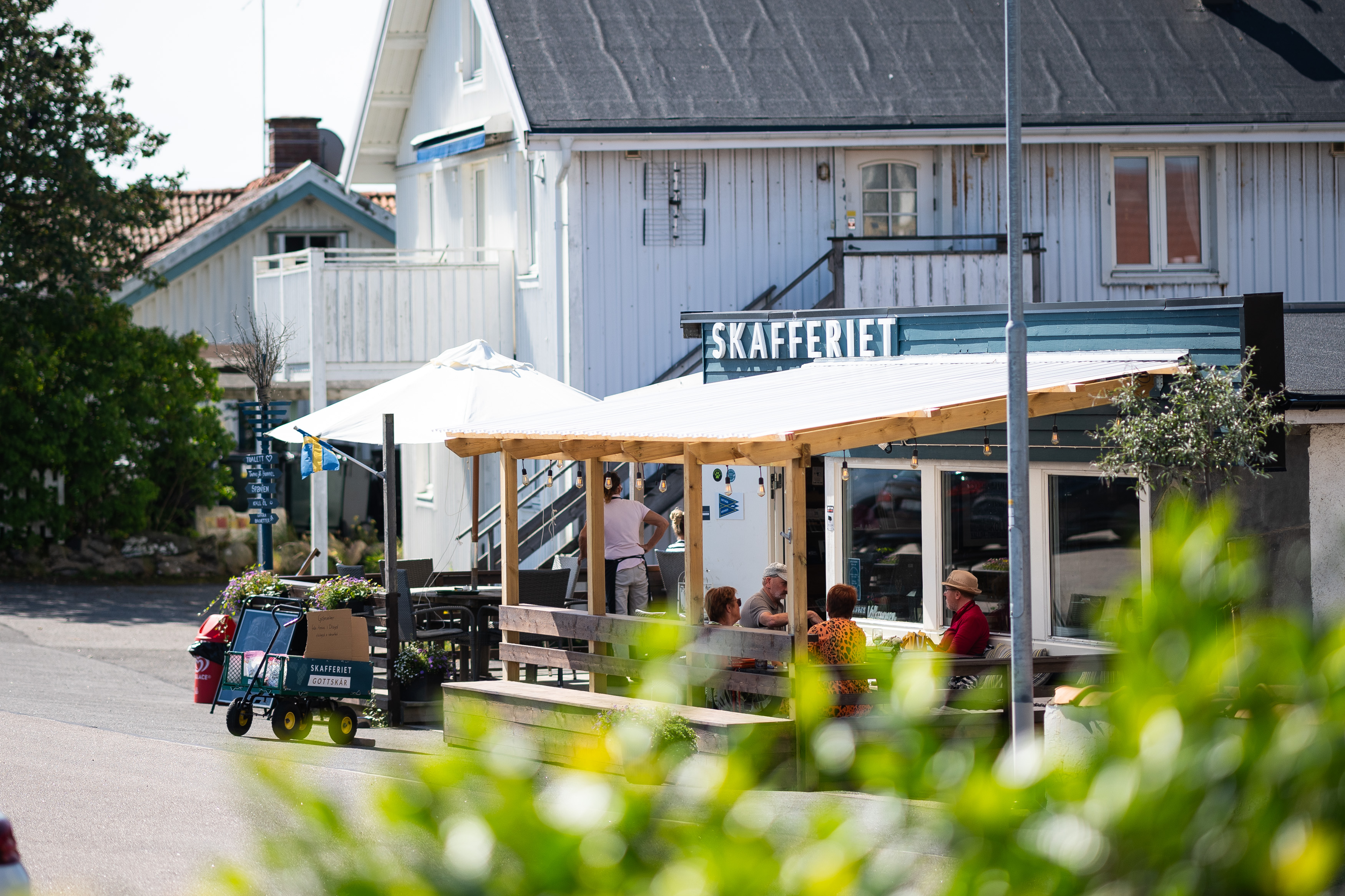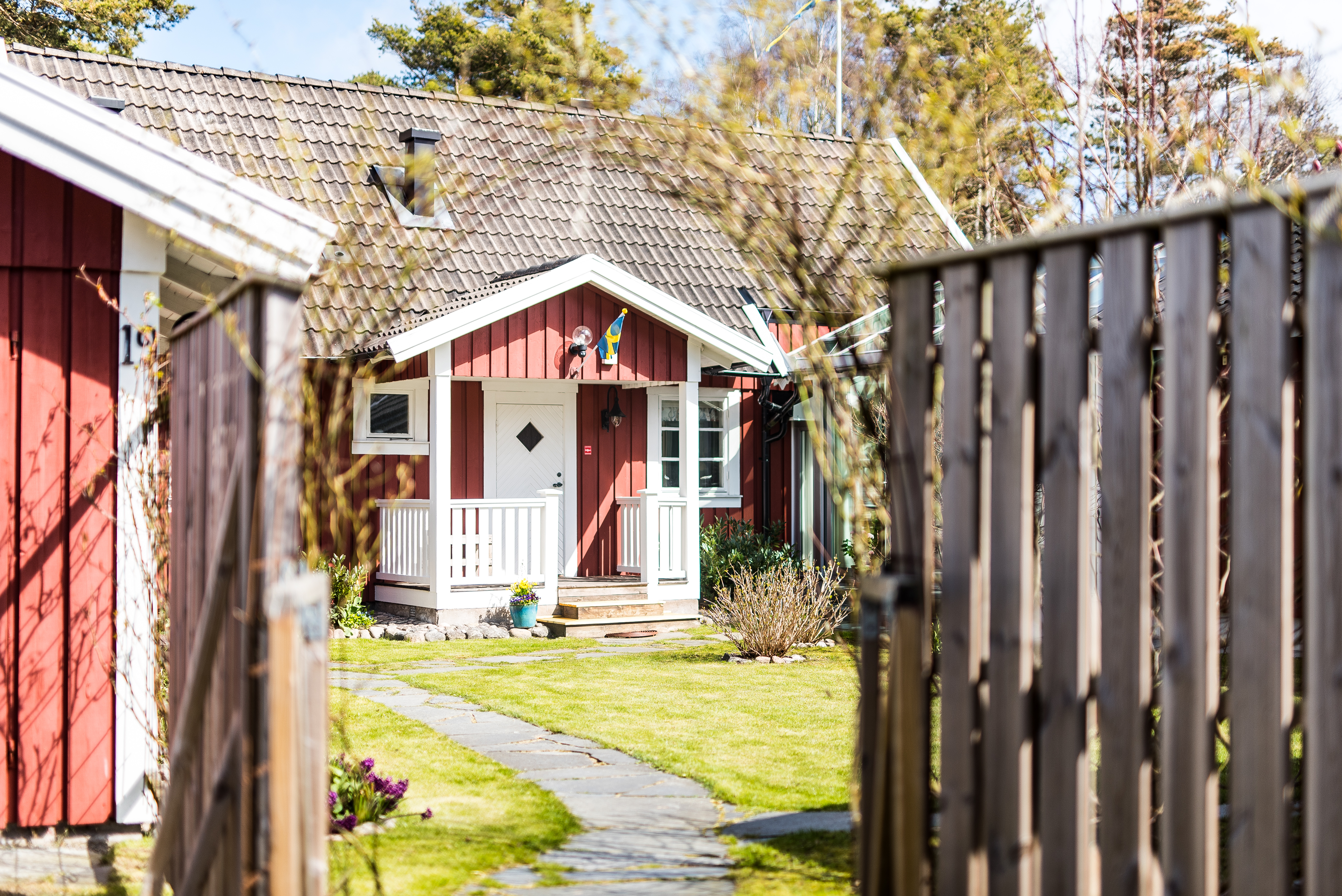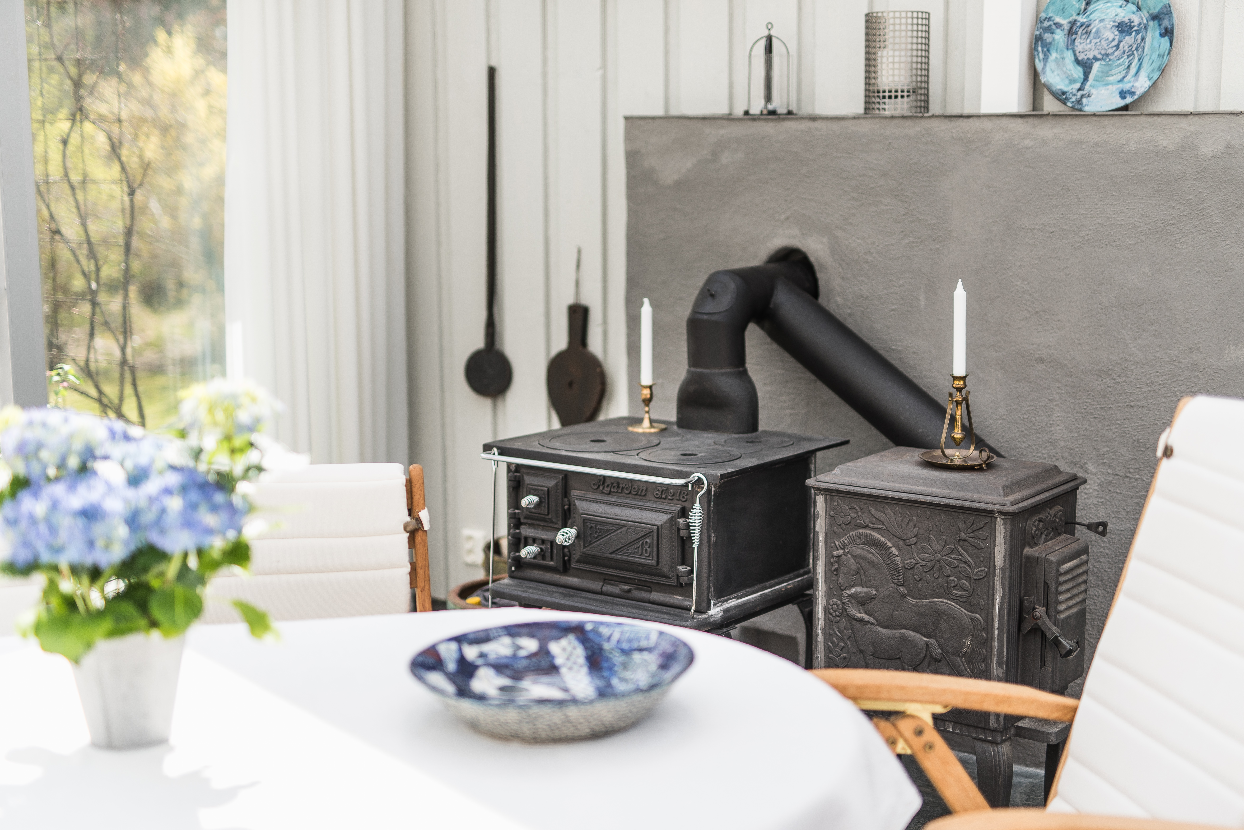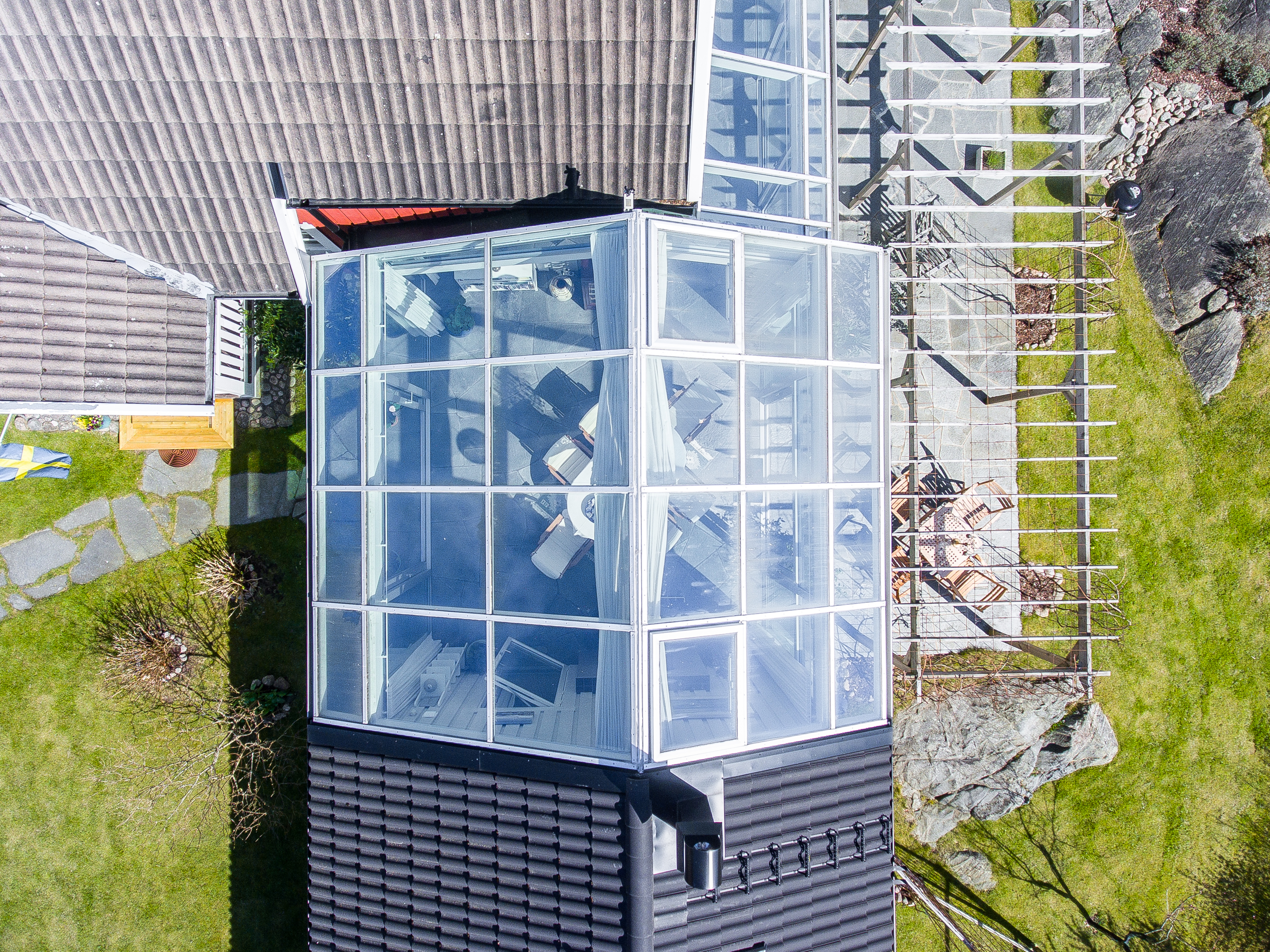 I anslutning till det inglasade rummet/vinterträdgården finns en stensatt och insynsskyddad uteplats.