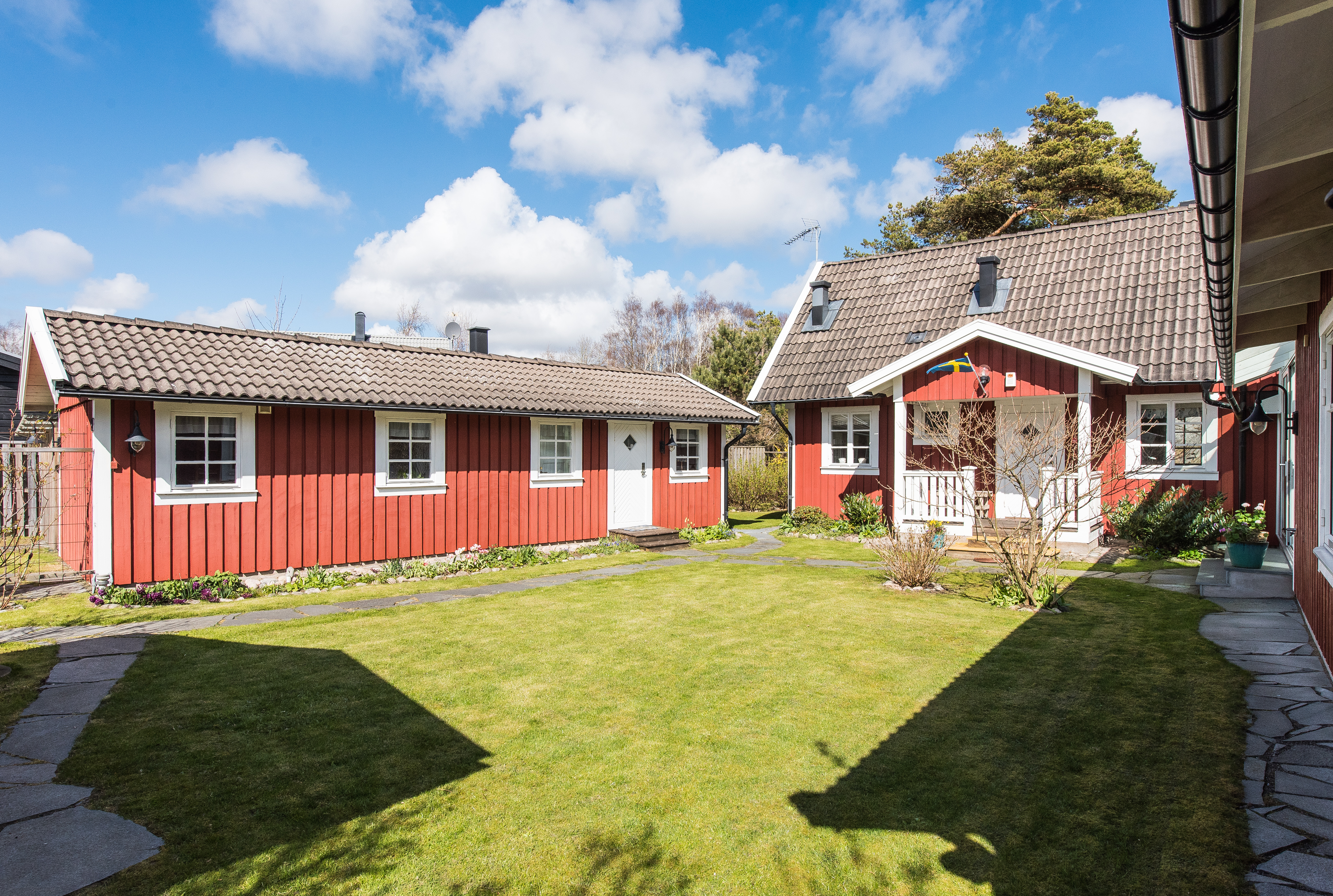 Fristående gästhus om ca 50 kvm. I entrén har ni avhängning och till höger ett sovrum. Till vänster har ni tvättstuga kombinerat med dusch och bastu. Innanför finns det en separat toalett som är helkaklad med handfat och WC. I gaveln mot biluppställningsplatsen finns ett uppvärmt redskapsförråd. Vid andra gaveln finns ett låsbart kallförråd för trädgårdsmöbler etc.